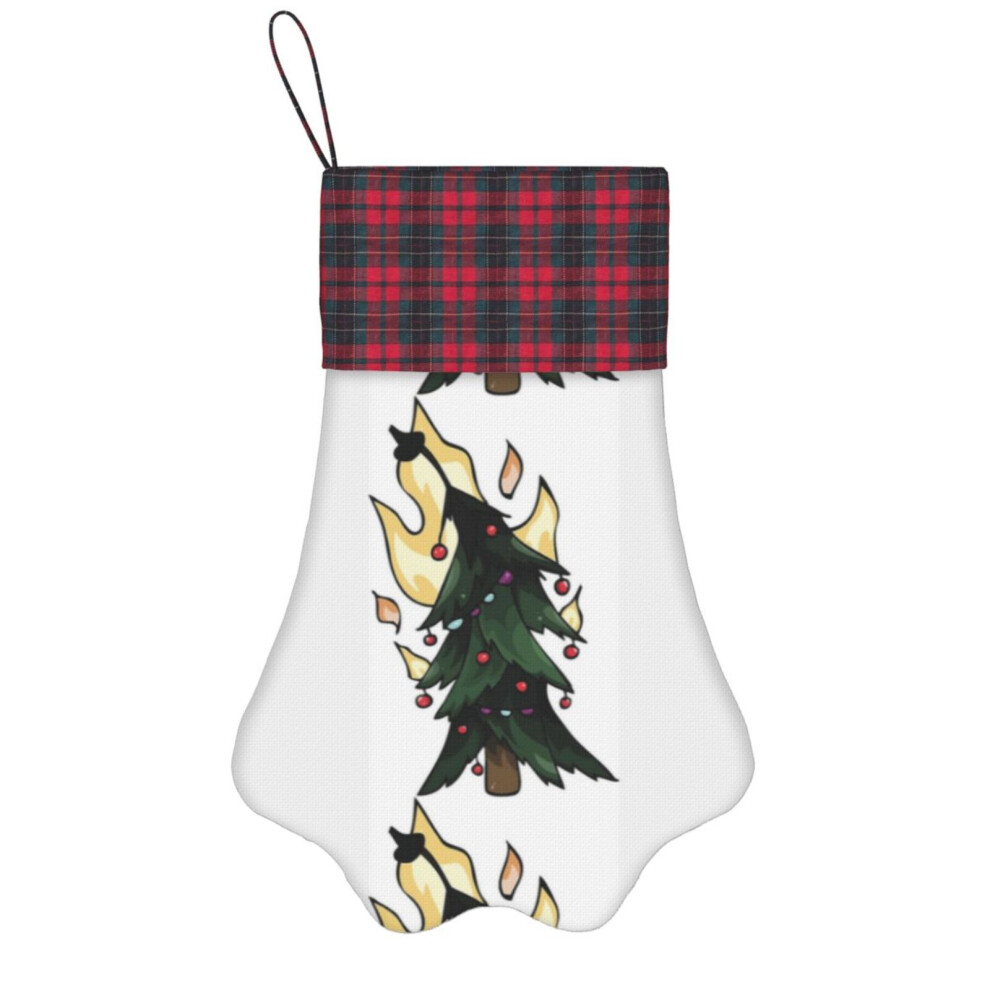 (Burn It Up!=2711) Paw Christmas Stockings Buffalo Tartan Plaid for Cats Dogs Pet Hanging Xmas Tree Decorations