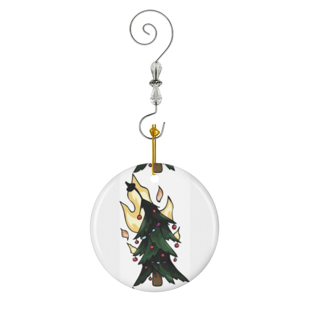 (Burn It Up!_2711) Christmas Ornaments Ceramic with Crystal Hook Xmas Handmade Tree Decorations Keepsake Gifts Stocking Stuffer