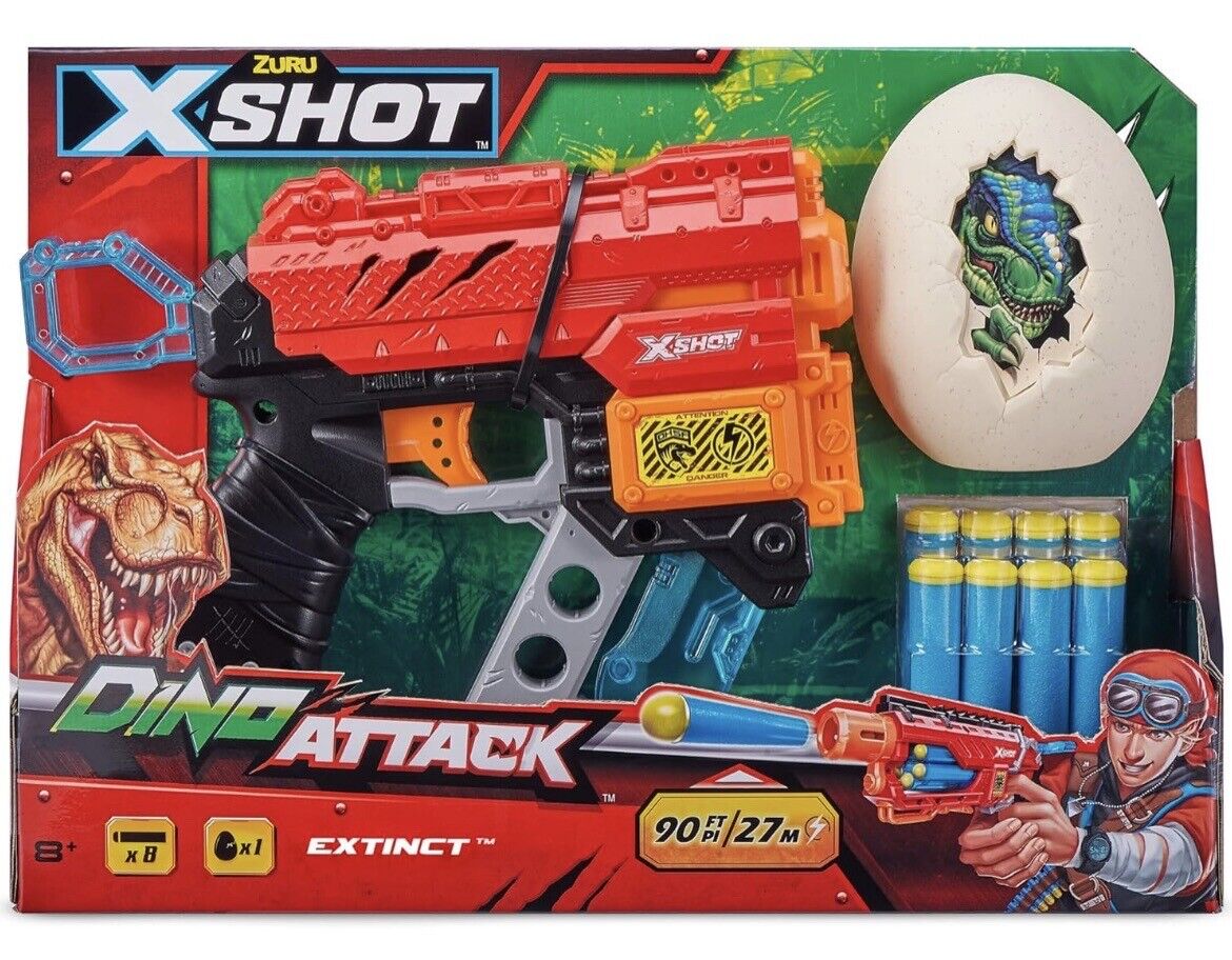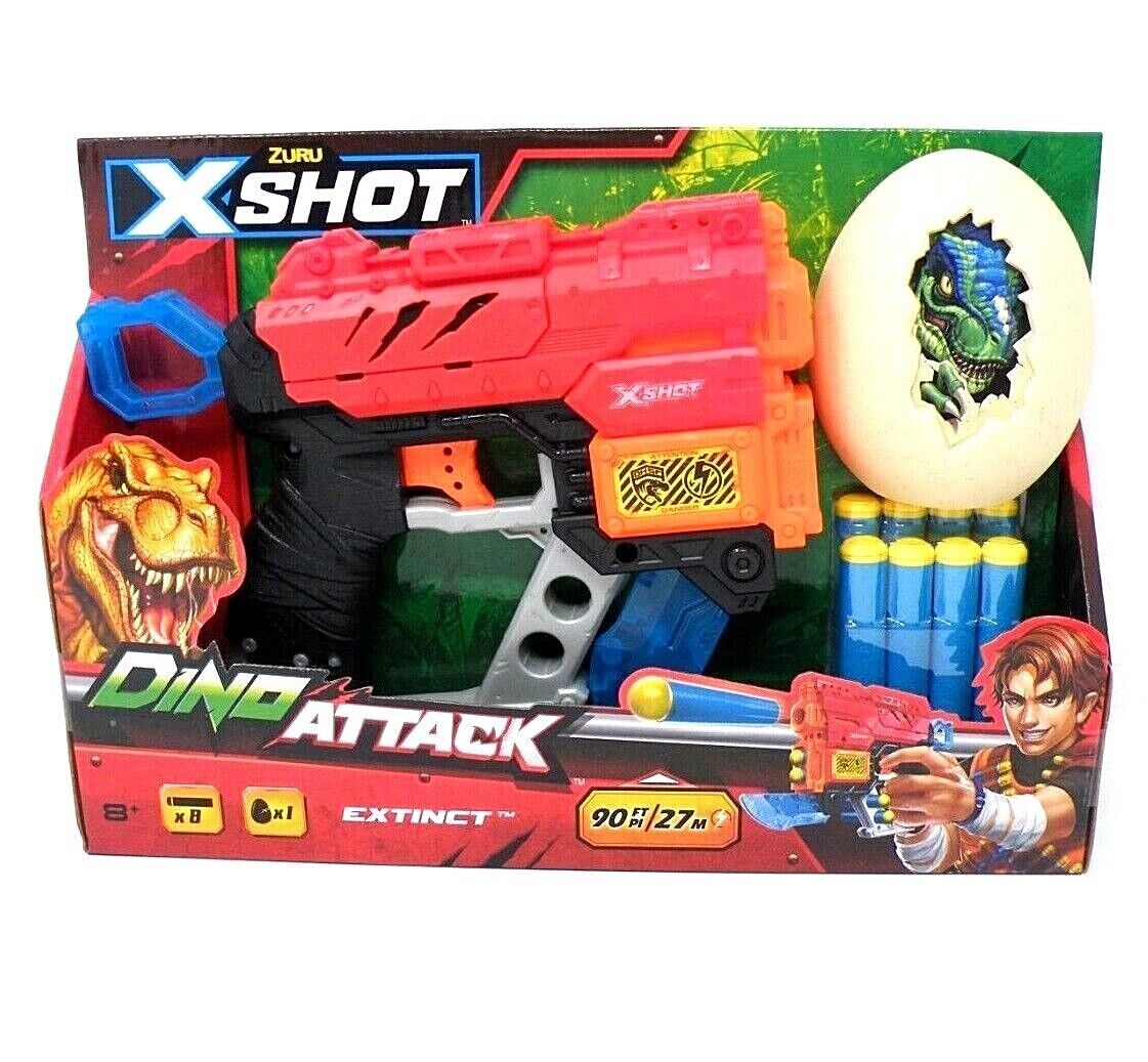 Zuru X Shot Dino Attack Extinct Blaster Toy Gun with 8 Foam Darts for Age 8+