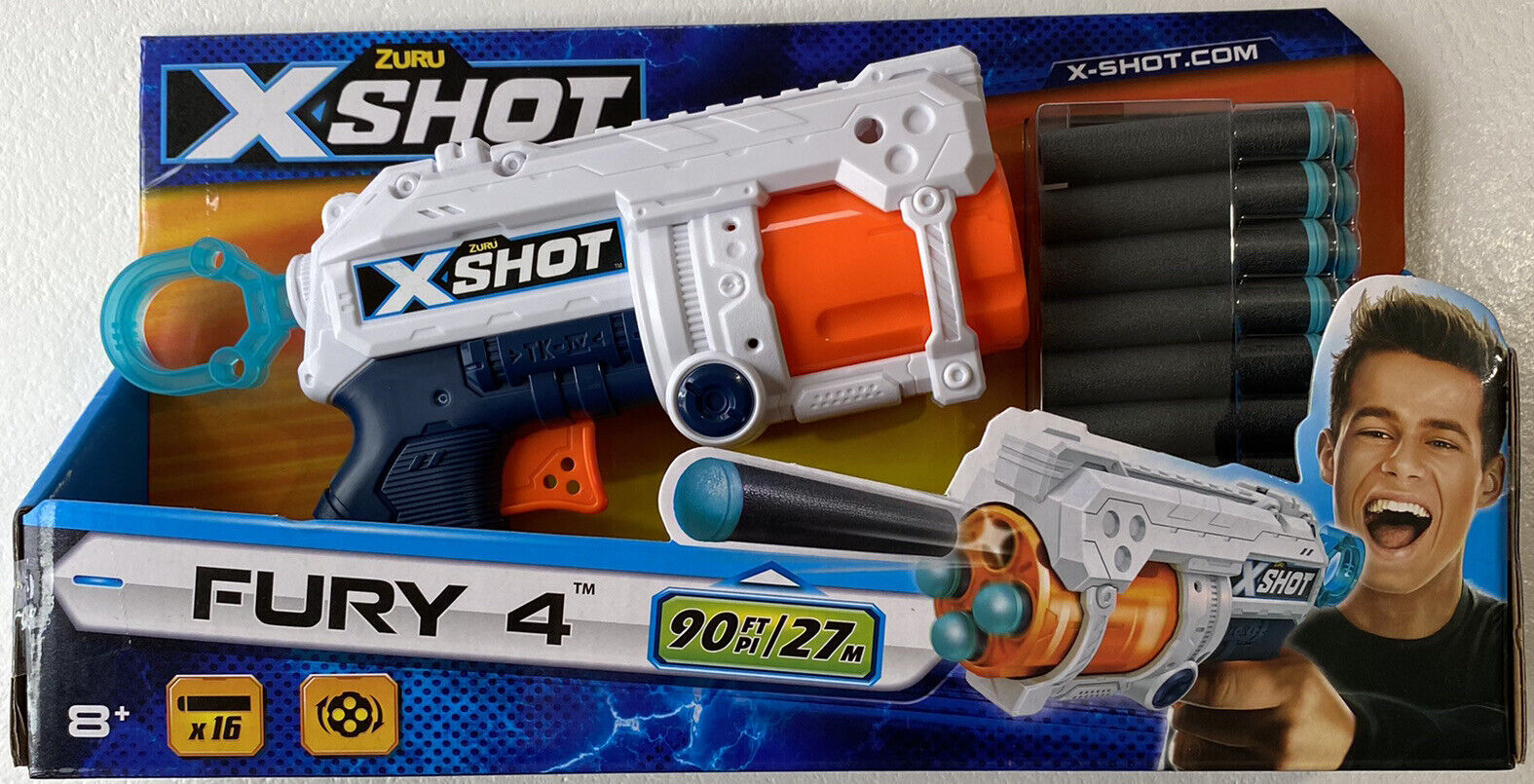 Zuru X Shot Fury 4 Blaster X16 Soft Foam Darts NEW