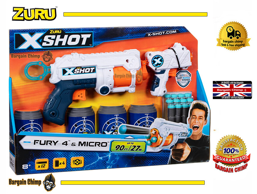 Zuru X Shot - Fury 4 & Micro pistol Bundle with 12 Darts & 4 Half Cans targets