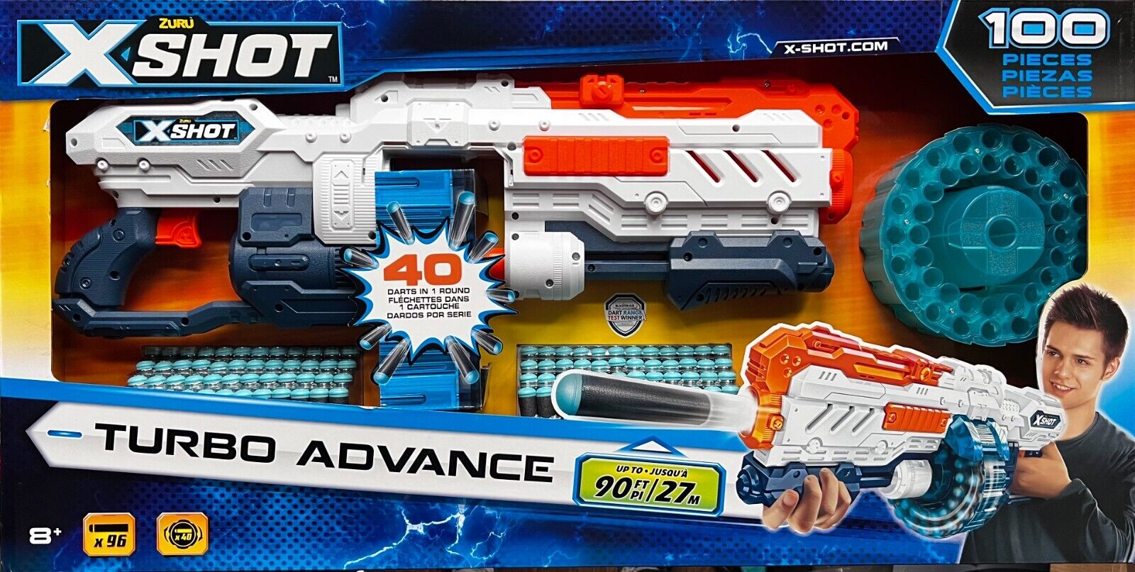 ZURU X-Shot Turbo Advance Blaster (36136) 40 Capacity + 96 Darts 90 ft / 27 m