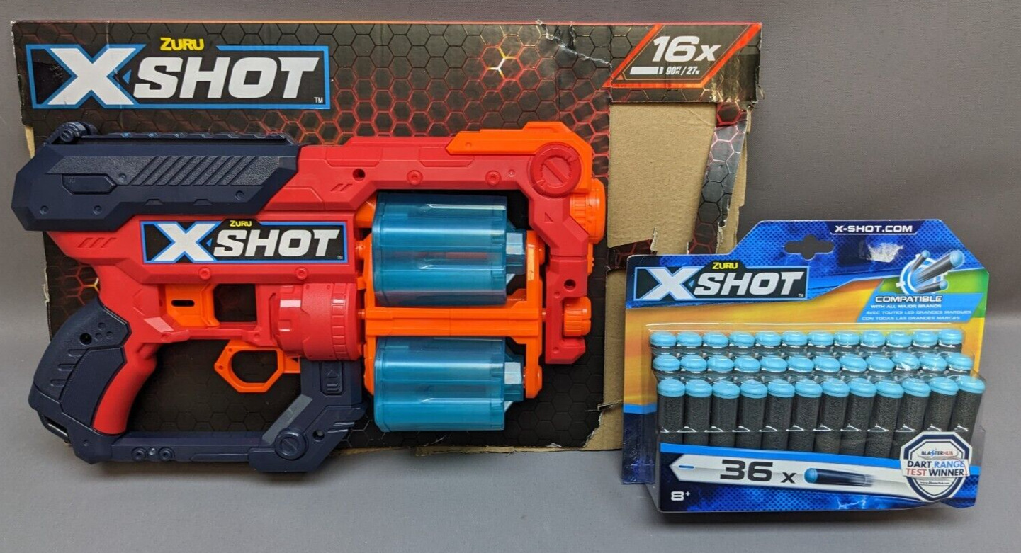 Zuru X-Shot 2x MK3 Foam Dart Blaster Combo Pack 24m range w/ 16 Darts & 3Cans