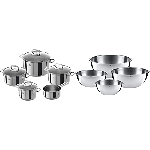 Zwilling 5-piece Pot-Set, with 4 Lids, Suitable for Induction, Stainless Steel, Quadro,60 x 50 x 30 cm & WMF Küchenschüssel Gourmet Set 4 TLG. 0645709990