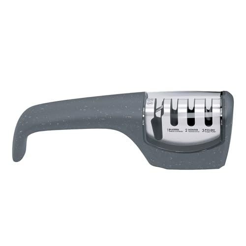 Zyliss Knife Sharpener, 4 Slots for Sharpening, Honing, Polishing, and Serrated Blades, Non Slip Base, Compact Tool Sharpens and Restores Kitchen Knives, Made with Sustainable Wheatstraw
